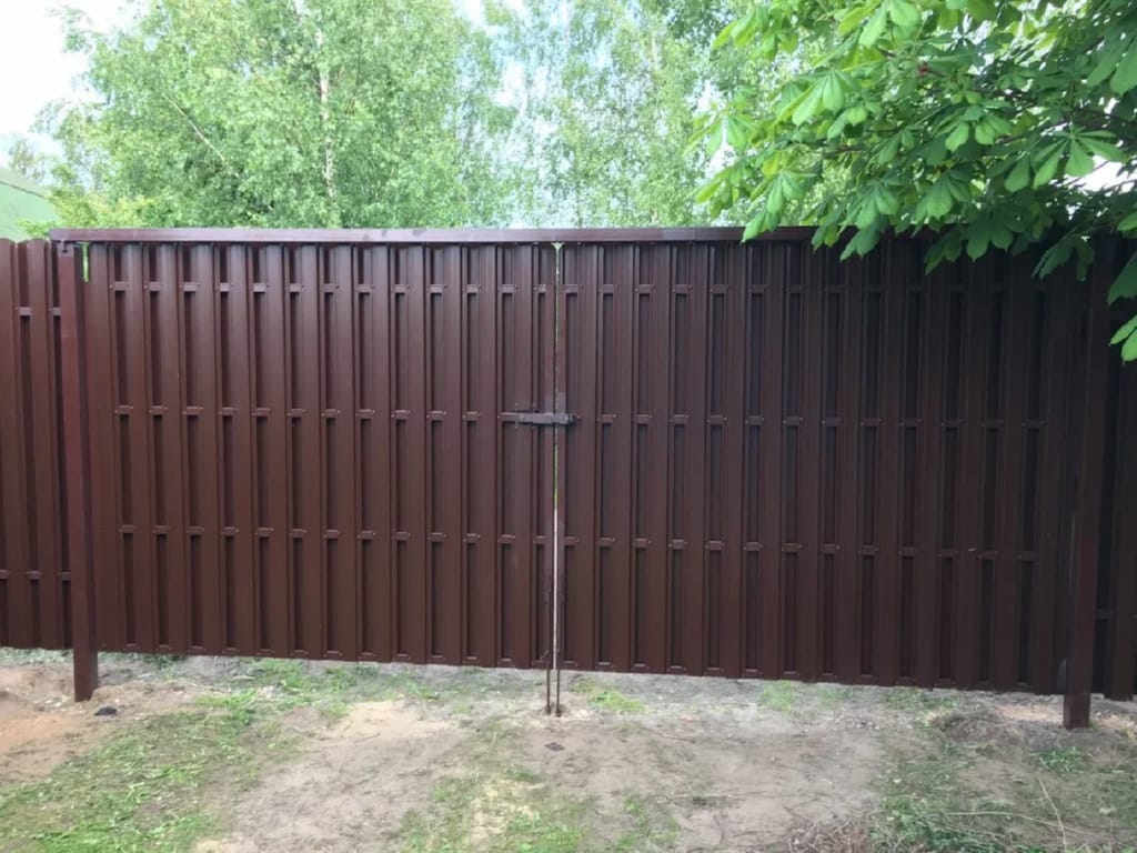 Ворота из евроштакетника распашные пример 1